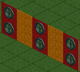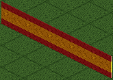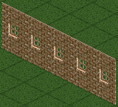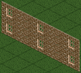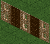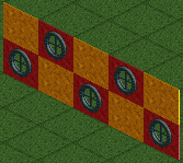 When I say stripes, I'm talking horizontally. I've already demonstrated vertical stripes via the colors and textures, so I need not say more. This specific method can use both colors and textures to give an extra accent to any wall or building. However, in order to do this, be sure that you use multiple walls for every vertical slot. If you use one wall per tile, you won't be able to color it appropriately. Now to the pictures.